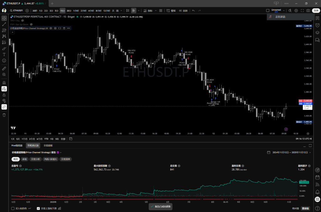 默认回测的周期就是你图表显示的周期,这个结果就已经不错了,我比较满意。然后我们就可以准备接入到Bitget或OKX的真实市场中去了。