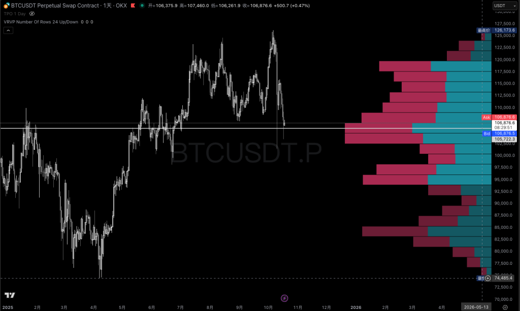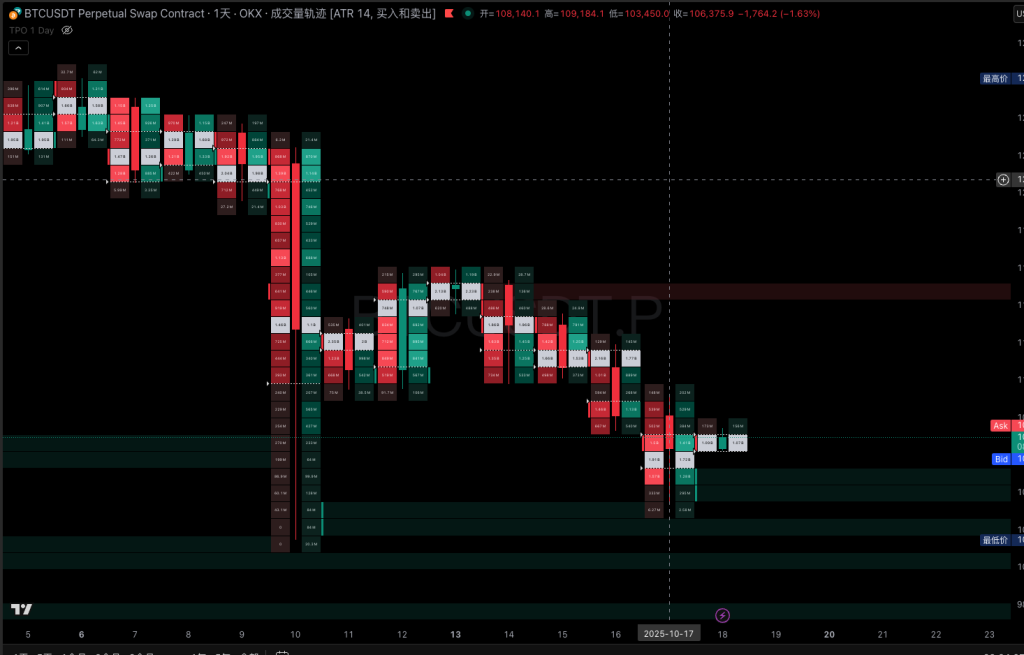 从足迹图来看,昨日受到中美关税缓和的消息面的影响,在103K-105K出现了大量的买方,出现了显著的买卖不平衡区间。